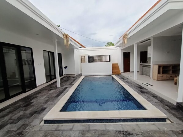 Recreational amenities at the villa include an outdoor pool.
