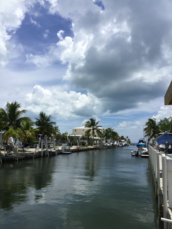 Centrally located on the oceanside on a unique private road and wide canal. Steps away from the ocean making this its own special retreat. Restaurants and shops close by in the heart of Key Largo. Slip away into paradise and let the ocean breeze take you away. Fully stocked kitchen. Balcony full of seating and patio table to enjoy waterfront dining. Happy hour by the tiki hut to enjoy the sunset afternoons. Nothing better than spending your days in this quiet retreat. Miami Airport is about 90 minutes away.