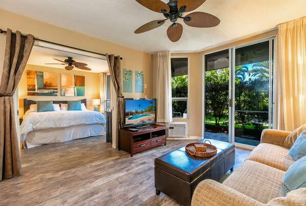 This nicely decorated, first floor, one-bedroom quiet condo is conveniently located across the street from Kam II beach (good for snorkeling and sunsets) and steps to the pool/spa/bbq grills. Restaurants and shops are also within walking distance. The condo is stocked with beach accessories and the kitchen has all the necessities as well. The furniture is very comfortable - a nice home away from home. Planning our next stay soon. Mahalo!