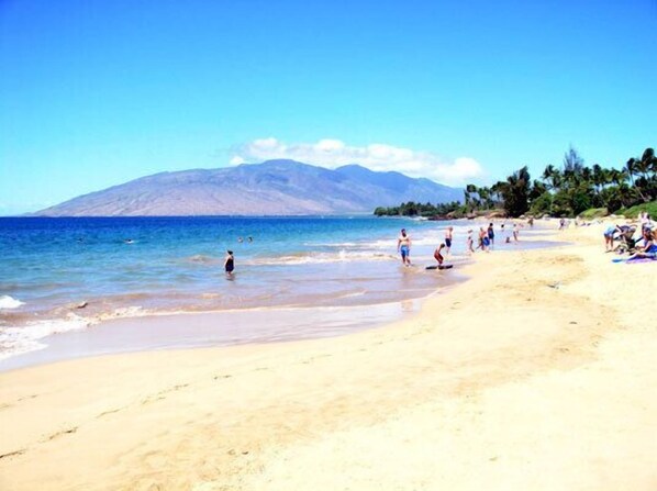 Across from Kam III beach. Close to dining and Wailea. Condo is clean and comfortable. Complex is quiet and well maintained. We plan to stay again.
