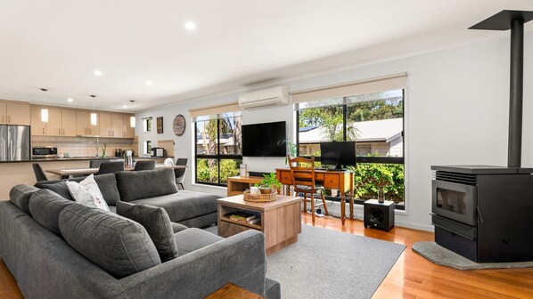 Kilcunda Stay is a delightful single-storey family home in Kilcunda, just minutes from the beach and famous Kilcunda Pub. This lovely home features polished hardwood floorboards throughout, smart TVs with JBL bluetooth/wifi speakers in the living room and kitchen/meals/family room. Enjoy beautiful water views on the fantastic rear covered deck with gas BBQ or relax in the garden with outdoor seating.