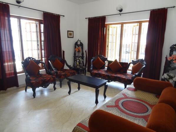 Nestled in a quiet, serene area surrounded by lush greenery, this Home Stay offers the perfect retreat. With AC rooms, attached baths and modern amenities like WiFi and coffee makers, guests can unwind in comfort. The first floor is reserved for guests with a library and two terraces - one for bird watching and another for barbecues.