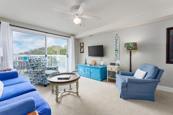Discover a coastal haven in our 3BR, 2 Bath Condo, steps from the beach. You'll enjoy the large outdoor deck & well stocked kitchen ready to prepare any meal.