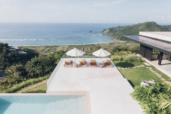 On the peak position in Tampah Hills, Villa V offers a serene escape with its minimalist design and expansive open sanctuaries. Enjoy the ocean breeze on the spacious master bedroom's upper floor or unwind by the big pool with massive sunken sofa.