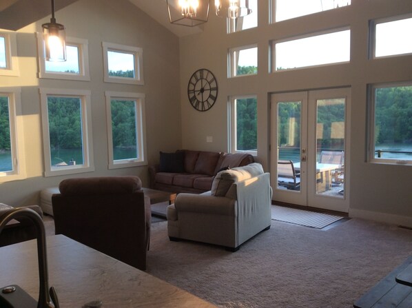 Highly recommend! Large, new, beautiful home, with great views of the lake in either direction! Watch the fog lift in the mornings and the sunset in the evenings. Accomodations were as advertised and great communication with the owner. Will stay again!