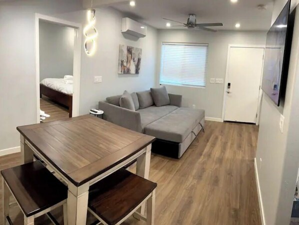 Tucked away from the street, this guest house offers a peaceful retreat. Enjoy your stay in this one-bedroom haven with a fully-equipped kitchen, dedicated workspace, and air conditioning to keep you comfortable. Free parking on premises adds convenience to your getaway.