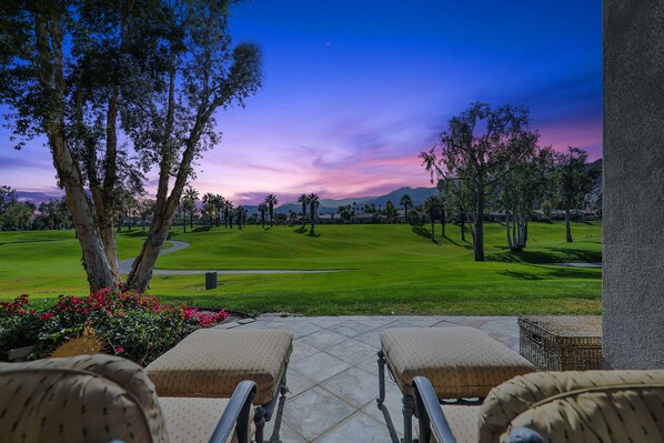 This one-of-a-kind AMAZING Champion 3 offers southwest, lake, and panoramic mountain views, which are night-lit for the Ultimate PGA WEST experience! Located on the Signature 4th Hole of the world-famous Arnold Palmer Private Course at PGA WEST this condo 1627 Sq Ft Champion 3 Floor Plan offers 2 bedrooms kings in both Primary and guest, plus Den with sofa sleeper. and 2.5 baths. There are many top-notch features in this light and bright unit. High ceilings, recessed lighting, Hunter Douglas Plantation shutters, crown molding, stylish ceiling fans, tile flooring in living areas, stone countertops, and remodeled bathrooms, including a large tiled walk-in shower in Primary bathroom. Remodeled kitchen features Stainless Steel appliances, gas cooktop, dual sinks, replaced white cabinetry, and Breakfast Bar. The Living Room in this elegant and quality appointed home is enhanced with a beautiful stacked stone fireplace, built-in cabinetry, and maximum windows to enjoy the stunning views. Washer and Dryer located in garage Southern exposure from back patio built in gas BBQ