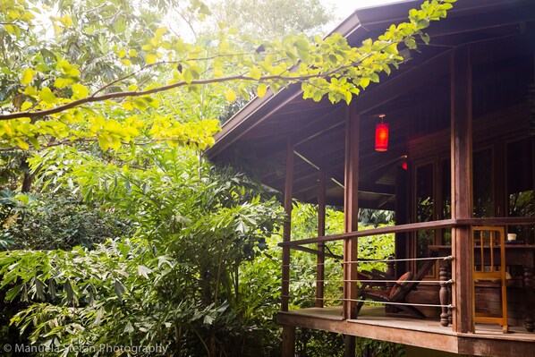 Waterlily is a unique 900-square-foot octagonal structure overlooking lush, tropical vegetation and is very secluded - it feels a bit like a tree house. The high ceilings and open plan and design of the roof allow for excellent ventilation. The gorgeous bedroom and deck is made with (reclaimed) tropical hardwood. The kitchen and bathroom are built with concrete, tile and colourful glass. Waterlily is elegant and artsy, but also modern and comfortable. It's the perfect place to work remotely or relax.