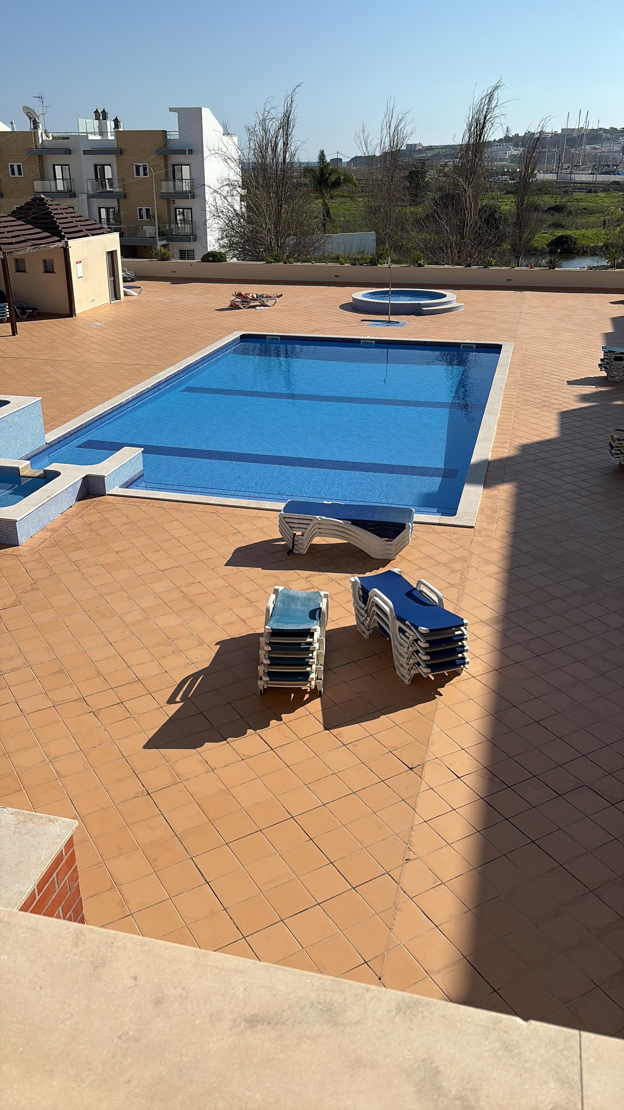 This apartment is really clean and very spacious. The beds are very comfortable and the kitchen is well-equipped with all mod cons. We had UK television and free wifi - what a bonus! It's in a small complex of apartments in a quiet location, but within a few minutes you are at the wonderful Lagos Marina. Then five minutes later you are in the heart of Lagos Old Town. The beautiful Meia Praia beach is only five minutes from the apartment and Pingo Doce supermarket is only ten minutes away on foot. We stayed for 10 nights in May and had great weather. The swimming pool was warm enough to use and the sunbathing terrace around the pool is huge with plenty of sun loungers provided. The pool is beautifully lit at night and the apartment balcony overlooks the pool with Lagos Old Town in the distance. We had a lovely, relaxing time and will be booking again for next year!