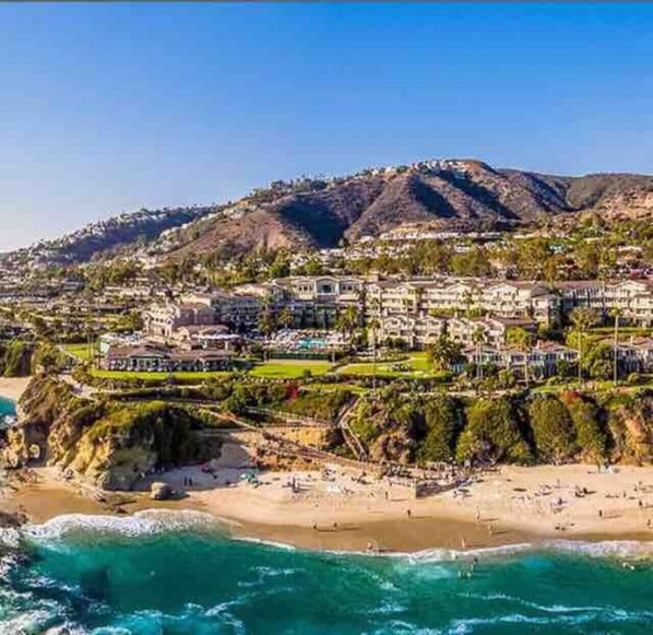 Laguna Beach is a magnificent artists Village many say similar to Carmel or La Jolla. The beaches are the best in the world as written by Condé Nast. The Villa is located at the outer edge of the downtown Village, so the beach is five minutes away walking and all of the amenities of the downtown Village are two minutes away. Laguna Beach has outstanding restaurants cafés Coffee shops galleries along with all of the traditional services footsteps away including post office churches fire station police station. A beautiful belltower is in the middle of the Village that the Villa looks upon. The bells ring hourly and songs are played on the bells at 9 AM and 5 PM.