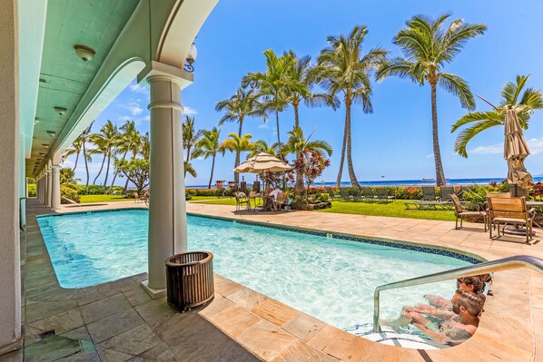 Lahaina is the Royal Playground of the Hawaiian Nation. Lahaina Shores Beach Resort will put you as close to the beauty of the sunsets, ocean reefs and fine sand as you can get! This studio was COMPLETELY REMODELED IN 2018 BY PALANI ALEXANDER'S DESIGN with the finest materials and workmanship including stainless appliances, custom ceiling treatment, granite, and tile in keeping with the Hawaiian style. This studio boasts a full kitchen giving you the option to eat in or dine out. You'll enjoy the comforts of high-end furniture and luxury linens. This Mountain View condo is on the 5th floor putting you up above where you'll enjoy the lush West Maui Mountains offering spectacular sunrises and often rainbows in the afternoon. Just next door is the very popular 505 Front Street, joined by a footbridge, where you'll find a charming outdoor center filled with some of Maui's top world-class restaurants, luau's, boutique shops, art galleries, convenience store, live entertainment and much more. All the best of Lahaina's famous Front Street, including Banyan Tree Park, the Lahaina Harbor, art galleries, and more are just 2 blocks away. The pool/whirlpool, BBQ, and beautiful sandy beach are just steps from the lobby providing unobstructed views of Lanai and the Pacific.