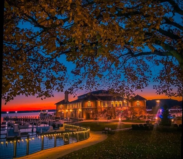 • Riviera shops and boat house view in Geneva Town of Wisconsin