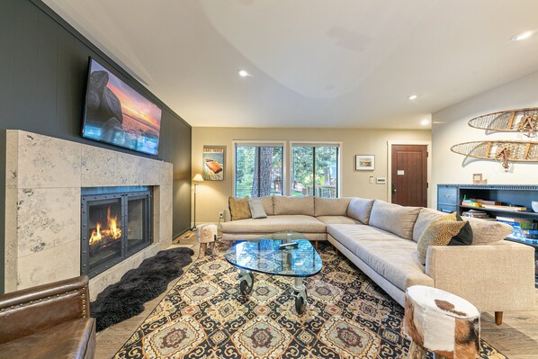 TV, fireplace - Antler Cabin By Tahoe Getaways  - Remodeled 2 BR in Tahoe Park - Walk to Lake (Tahoe City)