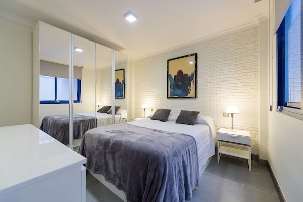 1-Bedroom Apartment Entire apartment · 1 bedroom · 1 living room · 1 bathroom · 1 kitchen · 50m² 2 beds (1 double, 1 double sofa bed) Exceptional and modern apartment with capacity for 4 people. Very spacious and bright with furniture and décor designed to facilitate an enjoyable stay either for business travel, pleasure or rest. High-end mattresses with quality lingerie (cotton or Egyptian thread) and pillow menu (Latex, visco-elastic, ergonomic, etc) to make the most of your rest. Spacious living room, there is a sofa-bed (140 x 190 cm) where you can watch a TV Samsung 50" 4K SmartTV. In the kitchen you will find a complete equipment both home appliances and fixtures and utensils (Nespresso coffee machines and traditional, oven, microwave, fridge, induction, etc). Excellent location given that is located just 50 metres from Las Canteras Beach and 100 metres from the shopping center, financial and main city leisure (terraces, restaurants, shops, El Corte Inglés, golf, paddle, auditorium). It has free safety box and high speed WI-FI internet access.