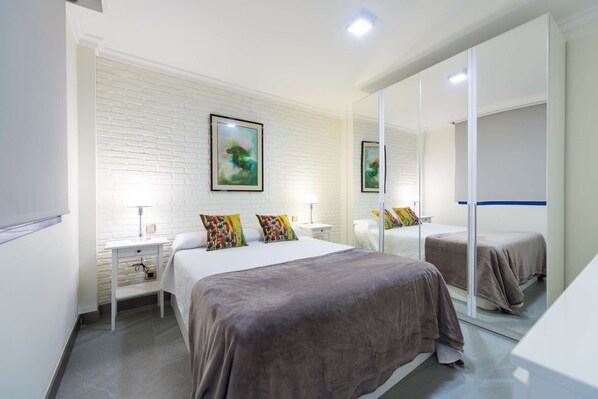 1-Bedroom Apartment Entire apartment · 1 bedroom · 1 living room · 1 bathroom · 1 kitchen · 50m² 2 beds (1 double, 1 double sofa bed) Exceptional and modern apartment with capacity for 4 people. Very spacious and bright with furniture and décor designed to facilitate an enjoyable stay either for business travel, pleasure or rest. High-end mattresses with quality lingerie (cotton or Egyptian thread) and pillow menu (Latex, visco-elastic, ergonomic, etc) to make the most of your rest. Spacious living room, there is a sofa-bed (140 x 190 cm) where you can watch a TV Samsung 50" 4K SmartTV. In the kitchen you will find a complete equipment both home appliances and fixtures and utensils (Nespresso coffee machines and traditional, oven, microwave, fridge, induction, etc). Excellent location given that is located just 50 metres from Las Canteras Beach and 100 metres from the shopping center, financial and main city leisure (terraces, restaurants, shops, El Corte Inglés, golf, paddle, auditorium). It has free safety box and high speed WI-FI internet access.
