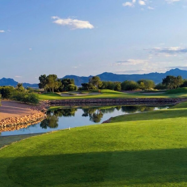 Spend your mornings enjoying coffee in the peaceful golf community, afternoons cooling off at the community pool and hot tub, and evenings exploring the excitement of the Las Vegas Strip just minutes away.