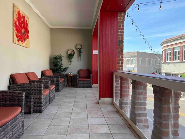 All guests have access to a beautiful balcony that overlooks Central Avenue.