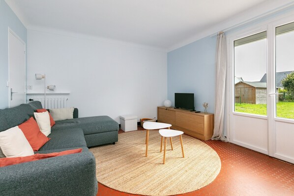 Located in Le Croisic, this 66 m² holiday home welcomes up to 6 guests. It features one bedroom with a double bed (160), and a second bedroom with a double bed (140) plus two bunk beds (2x90). Enjoy a fully equipped kitchen, a bright living room with garden view, separate toilet, and a bathroom with walk-in shower. The house includes a TV, washing machine, step-free interior access, and family-friendly amenities: baby cot and crib, high chair, booster seat, changing mat, baby bathtub, children’s dishes, potty, toilet reducer, stroller, toys, children’s books, and board games.