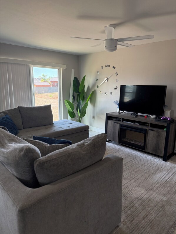 Your home away from home in Lehigh Acres with 2 bedrooms. This terrific house features 2 queen beds and a cozy living room with a sofa bed, perfect for extra guests. Guests enjoy 2 bathrooms, each equipped with a shower and a bathtub for relaxing soaks. The space stays comfortable year-round with heating and air conditioning. Whether you’re unwinding after a day of exploring or enjoying a quiet night in, this awesome spot offers everything you need. We’ll be available to answer any questions while you stay at our place.