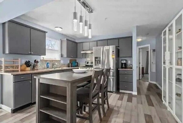 Welcome to our stylish 3BR, 2BA Kansas townhome! With bamboo flooring, a modern kitchen, and a basement rec room, this space is perfect for relaxation (or work if you must). The primary bedroom features a private bath, and additional living space ensures flexibility. Conveniently located near shops, restaurants, and highways, our townhome is your ideal retreat. Book now for a delightful stay in the heart of America!