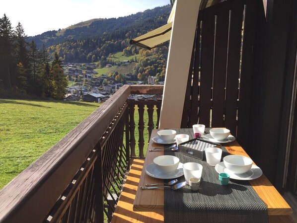 Outdoor dining - Renovated studio ski-in/ski-out, balcony, pool, parking (Les Gets)