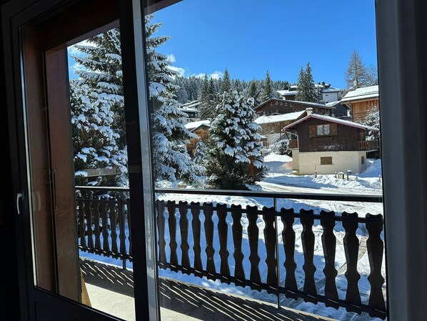 Description: Entrance - separate toilet - bathroom (bath, shower, sink) - 1 bedroom equipped with 1 double bed (140) + TV + cupboard, adjoining bathroom (bath, sink, toilet, washing machine) - 2 bedrooms equipped with 1 double bed (140) + TV + cupboard - Living room dining room with lounge area equipped with 1 TV - Kitchen area opening onto the dining room with a equipped separation bar (dishwasher, large fridge + freezer compartment, stove with ceramic hob, Nesspresso coffee maker, toaster, kettle, microwave, extractor hood, 1 sink) - Access to the equipped floor: mezzanine area open to the living room with 1 single bed (90) + cupboard - 1 bedroom with 1 double bed (140) + 1 single bed (90) + cupboard - 1 bedroom with 1 double bed (140) + TV + storage - 1 bathroom (shower, sink, toilet). All bedrooms have access to a balcony that goes around the apartment. Prohibition on using the fireplace. - LINEN (sheets and towels) is included in the price of your rental during the winter season - Please note, this is a paid option during the short stay and the summer season - Cleaning not included in the rental, this is a paid option.