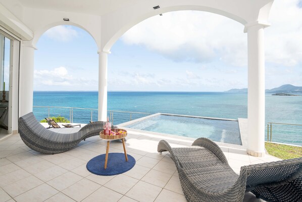 Terrace/patio - Breathtaking 180° views on the Caribbean sea.  Cliff side & Private beach access (saint martin)