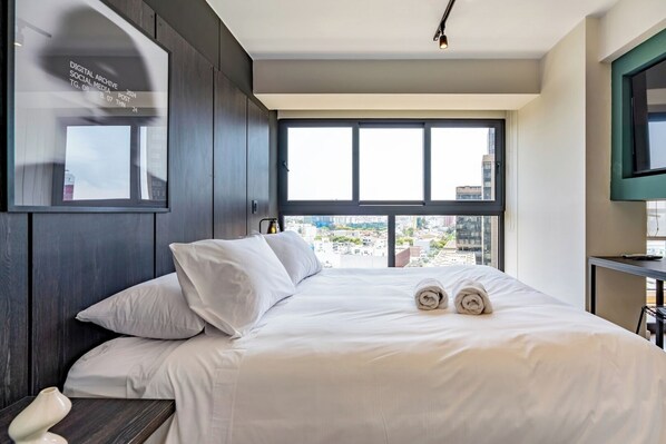 - Comfortable queen-size bed - Hot water - High-speed Wi-Fi - Fully equipped kitchen - Full bathroom - Access to the building’s common areas: gym and coworking space.