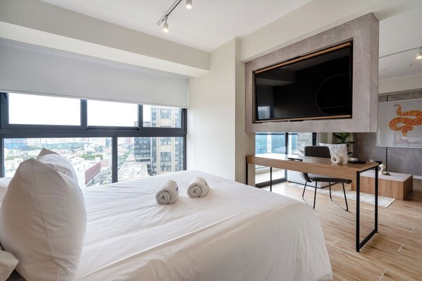 - Comfortable queen-size bed - Hot water - High-speed Wi-Fi - Fully equipped kitchen - Full bathroom - Working space - Access to the building’s common areas: gym and coworking space.