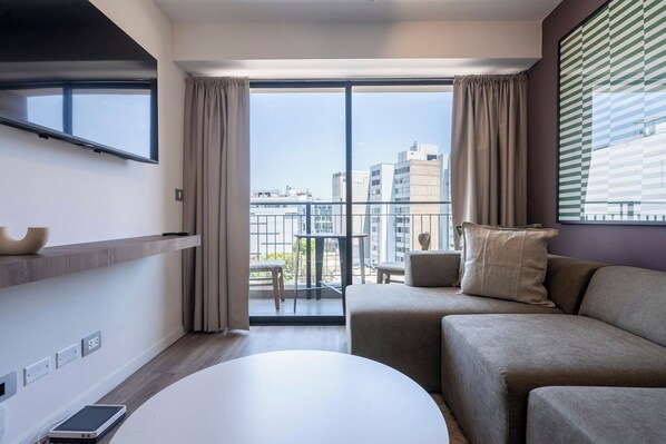 - Comfortable queen-size bed - Hot water - High-speed Wi-Fi - Fully equipped kitchen - Full bathroom - Access to the building's common areas: coworking area, laundry room and gym.