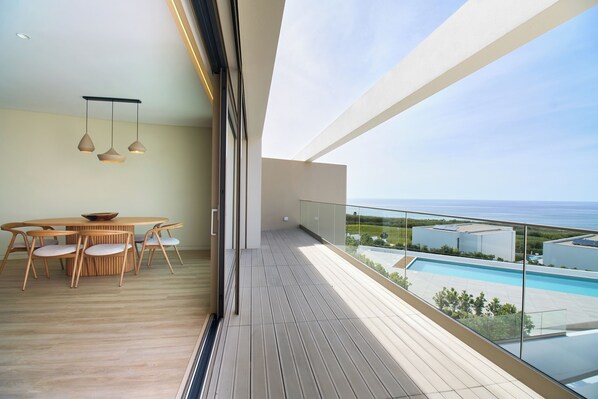 Experience luxury living in this stunning apartment within an exclusive condominium, offering breathtaking Atlantic Ocean, Berlenga Island, the Peniche Peninsula and surrounding countryside views, coupled with stunning sunsets. Newly built and finished to the highest standards, this exquisite residence is ideally situated just a short stroll from the beach. Lourinhã town is a 3 minute drive from the development so all amenities from restaurants and cafes to supermarkets and farmers’ market are at hand. Enjoy delicious meals at our on-site restaurant, whether you dine in or choose takeaway making it easy to relax and enjoy your vacation. Located on the top floor, the apartment welcomes you into a spacious living area that seamlessly connects to a fully equipped modern designer kitchen—thoughtfully designed to make cooking both effortless and enjoyable.