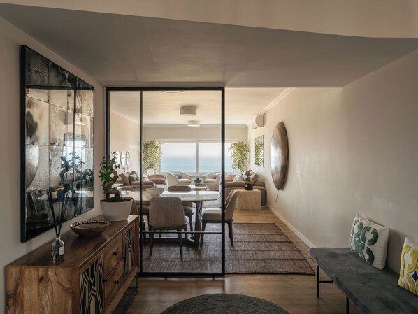 This tastefully designed apartment features two cozy bedrooms with 1,000-thread-count sheets, open-plan living and dining area with Calcutta marble table, and ocean views. Fully equipped modern kitchen with SMEG appliances and SMEG coffee maker, elegant bathroom with luxury towels, toiletries and natural light throughout.