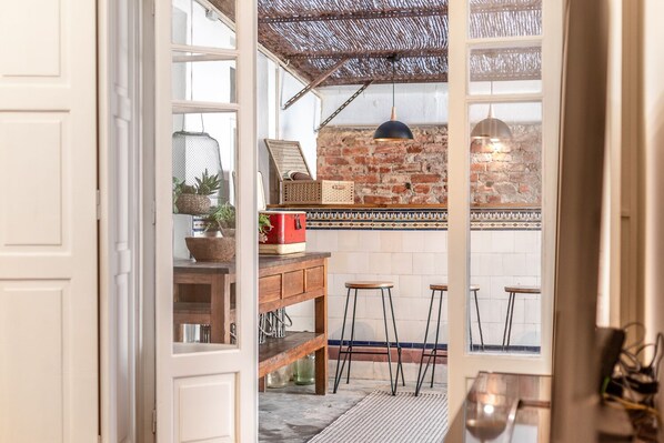 We loved the layout of this stylish apartment! Each room is inviting and thoughtfully designed, and the kitchen has everything you might need. The main attraction is the fabulous terrace where we gathered after busy days of sightseeing. We highly recommend this gem of an apartment. Our host was extremely helpful before and during our stay. Overall, a terrific experience!