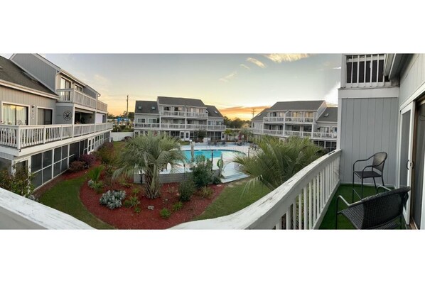 Golf Colony Resort is located in Little River, SC, minutes from what all North Myrtle beach offers. This condo is convenient to Cherry Grove Pier, North Myrtle Beach Sport complex, access to Hwy 31 Myrtle Beach bypass, and many championship golf courses. The condo's balcony overlooks the pool surrounded by a manicured garden. Each room has open vaulted ceilings, a fully furnished kitchen for doing all home-cooked meals, and then step the balcony for an afternoon relax and chat or out for a lounge at the pool.