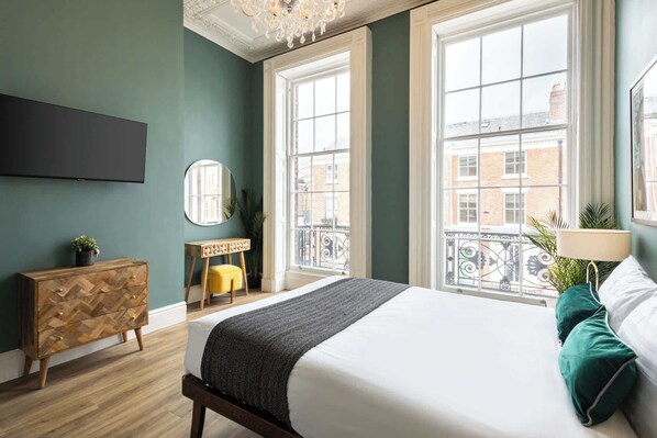 The Falkner Quarters II and III consist of two elegantly designed apartments within the same building, available to book together as a single listing, making it an ideal choice for larger groups.