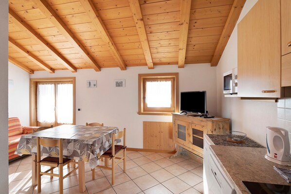 The property has access to a shared outdoor area which includes a garden and a barbecue. . Here you can relax and enjoy your holiday surrounded by the majestic nature of the alps.