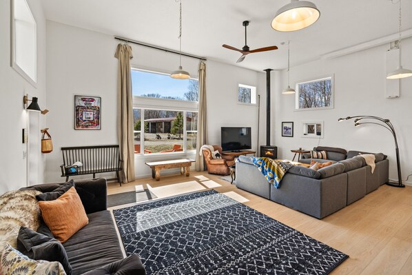 Smart TV, fireplace, books, music library - NEW River Island Retreat, unique industrial style modern on the Yellowstone (Livingston)