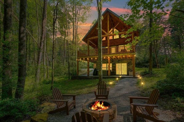 Hickory Haven is a 3 level custom-built log cabin on a 3 acre wooded lot including, but not limited to, granite countertops, hot tub, sauna, 2 separate sleeping areas, firepit, beautiful stone fireplace and much more.