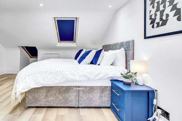 🛏️ 3 bathrooms (1 en suite) ⚡ Fast Wi-Fi 🍳 Fully equipped kitchen 🧺 Laundry 🌿 Private garden. 🚗 Driveway parking for vans. 🛠️ Garage for tools and storage. 📍 Quiet area near shops, parks & 🚆 fast trains to London Waterloo.