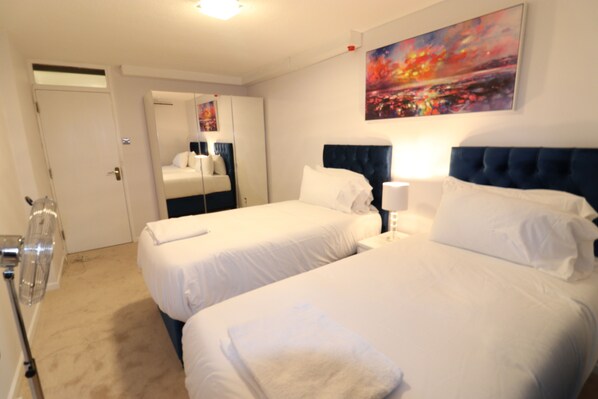 In the heart of the city, this stylish apartment offers a comfortable living room with a large flat screen smart TV and private balcony for outdoor relaxation. Both bedrooms have very comfortable twin beds with 5K pocket springs which can be linked into Super-king beds. The kitchen is fully equipped with all necessary appliances and supplies.