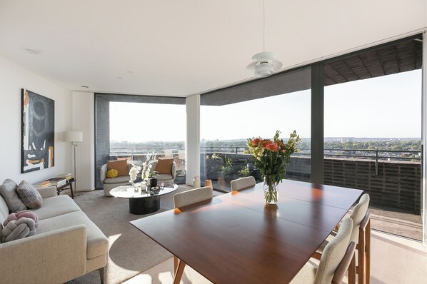 In Hoxton, this beautifully furnished apartment offers a serene escape. Enjoy sweeping views of west and north London from the comfort of your spacious 2 bedroom, 2 bathroom retreat.