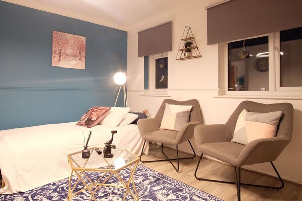 In this stylish and peaceful one-bedroom flat, have fun with the whole family in a double room, living room, kitchen and bathroom. This entire flat accommodates up to 4 people for a relaxing retreat.