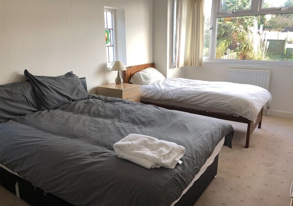 Welcome to a spacious family home, ideally situated for exploring London. This 3-story house offers a fully equipped kitchen with views of the large rear garden, perfect for breakfasting or relaxing.