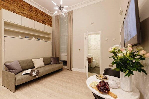Escape to this stylish studio apartment in the heart of Kensington, Zone 1. Stay within walking distance from famous museums and shops, then return to your private sanctuary with a fully-equipped kitchen and Nespresso coffee machine. Unwind with contactless self-check-in and central heating.