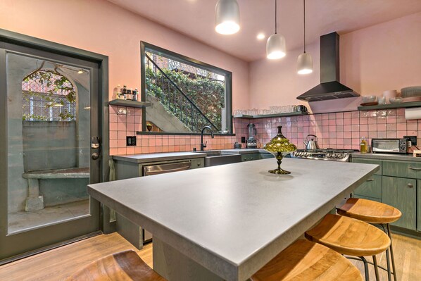 ✓Private Washer/Dryer ✓Fully-stocked gourmet kitchen (complete with new Moccamaster coffee station, Vitamix, popcorn-making station, gas stove, built-in microwave) ✓Fully-stocked bathroom (with hotel amenities - fresh towels, linens) ✓Workstations ✓Spacious lounge on attached balcony with city and garden views + new BBQ ✓Large lower patio with garden ✓4 Smart TVs (with Disney+, Max) ✓Piano & guitar ✓Gated front courtyard with fountain, lotus pond and flowering greenery ✓Ironing board / iron ✓High-chair, crib, booster seat and other kid friendly comforts ✓Regular cleaning services available for additional cost