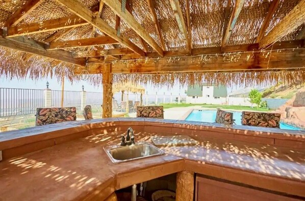 Poolside Bliss: Take a refreshing dip in the private pool to cool off during warm desert days or soak in the sun on the pool deck's comfortable loungers. The pool area is a tranquil oasis where you can unwind and enjoy the scenery.