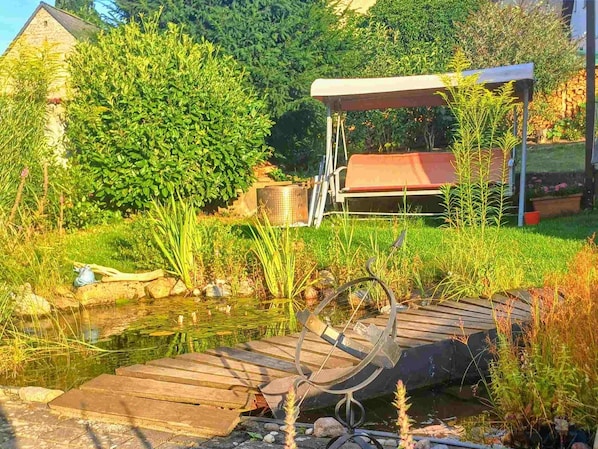 The room "Links" is cozy and practical furnished with a view of the courtyard and a part of the garden. So the facilities also include a radio, TV, dishes, coffee maker, toaster and refrigerator. It is connected to the room "right" by a hallway and shares the bathroom with shower and toilet. Both rooms can be booked separately.
