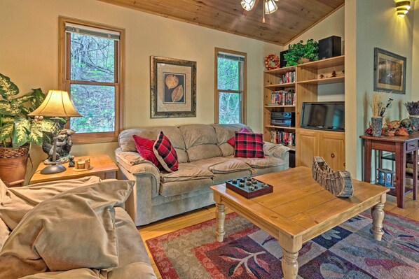 Title: Spacious Maggie Valley Cabin w/ Hot Tub & MTN View Reviews, Deals & Photos 2026 - Expedia.co.uk [See all properties](http://www.expedia.co.uk/Hotel-Search?regionId=&selected=93600750&adults=2&children=&sort=RECOMMENDED&useRewards=false&semdtl=&userIntent=&vip=false) Entire home # Spacious Maggie Valley Cabin w/ Hot Tub & MTN View Cottage in Maggie Valley with kitchen and balcony ## Photo gallery for Spacious Maggie Valley Cabin w/ Hot Tub & MTN View ![House (3 Bedrooms) | Interior - Spacious Maggie Valley Cabin w/ Hot Tub & MTN View (Maggie Valley)](https://images.trvl-media.com/lodging/94000000/93610000/93600800/93600750/87d5c7b4.jpg?impolicy=resizecrop&rw=598&ra=fit) ![House (3 Bedrooms) | Interior - Spacious Maggie Valley Cabin w/ Hot Tub & MTN View (Maggie Valley)](https://images.trvl-media.com/lodging/94000000/93610000/93600800/93600750/c09583ed.jpg?impolicy=resizecrop&rw=297&ra=fit) ![House (3 Bedrooms) | Interior - Spacious Maggie Valley Cabin w/ Hot Tub & MTN View (Maggie Valley)](https://images.trvl-media.com/lodging/94000000/93610000/93600800/93600750/f5925504.jpg?impolicy=resizecrop&rw=297&ra=fit) ![Interior - Spacious Maggie Valley Cabin w/ Hot Tub & MTN View (Maggie Valley)](https://images.trvl-media.com/lodging/94000000/93610000/93600800/93600750/ebc5a192.jpg?impolicy=resizecrop&rw=297&ra=fit) ![House (3 Bedrooms) | Front of property - Spacious Maggie Valley Cabin w/ Hot Tub & MTN View (Maggie Valley)](https://images.trvl-media.com/lodging/94000000/93610000/93600800/93600750/230b18a7.jpg?impolicy=resizecrop&rw=297&ra=fit) - Overview - Location - Amenities - Policies A firepit, a garden and a playground are just a few of the amenities provided at Spacious Maggie Valley Cabin w/ Hot Tub & MTN View. Stay connected with free WiFi in public areas. ## Reviews 10 Exceptional ### Entire home 3 bedrooms3 bathroomsSleeps 61797 sq ft ## Popular amenities - Kitchen - Dryer - Parking included - Free Wi-Fi - Air-conditioning - Outdoor space ## Add dates for prices Check-in Check-out Travellers ## About this property ### Entire place You'll have the entire cottage to yourself and will only share it with other guests in your party. ### Spacious Maggie Valley Cabin w/ Hot Tub & MTN View Cottage in Maggie Valley with kitchen and balcony Along with a garden, this smoke-free cottage has barbecues and free self-parking. WiFi in public areas is free. The cottage boasts a fireplace and offers a kitchen and a dryer. Guests can appreciate conveniences, such as 3 bathrooms and a microwave, and other amenities include a balcony and a stovetop. Air-conditioned accommodation at this cottage offers fireplaces and an iron/ironing board. Rooms open to balconies. Accommodation at this 3-star cottage has kitchens with stovetops, microwaves, kitchenware and utensils and dishwashers. Bathrooms include baths or showers. The recreational activities listed below are available either on-site or nearby; fees may apply. ## Property amenities ### Parking and transport - Free self parking on site - Limited on-site self parking ### Family friendly - Playground ### Kitchen - Cookware, dishware, and utensils - Dishwasher - Hob - Ice maker - Microwave - Oven - Paper towels - Spices ### Bedrooms - 3 bedrooms - Bedsheets provided ### Bathroom - 3 private bathrooms - Bathtub or shower ### Living spaces - Fireplace ### Entertainment - Books ### Outdoor areas - Balcony - Barbecue grill - Firepit - Garden ### Laundry - Dryer ### Comfort - Air conditioning - Ceiling fan - Heating ### Pets - No pets allowed ### Suitability/Accessibility - Smoke-free property ### Services and conveniences - Iron/ironing board ### Things to do - Hunting ### Safety features - Carbon monoxide detector (host has indicated there is a carbon monoxide detector on the property) - Smoke detector (host has indicated there is a smoke detector on the property) ### General - Garden ## Similar properties ![House (4 Bedrooms) | Interior](https://images.trvl-media.com/lodging/120000000/119100000/119091500/119091439/980a67c0.jpg?impolicy=fcrop&w=469&h=201&p=1&q=medium) ### Getaway w/ Guest House - 6 Mi to Lake Glenville! Glenville - Kitchen - Pet-friendly - Free Wi-Fi - Air-conditioning [](https://www.expedia.co.uk/Hotel-Search?startDate=2026-02-20&endDate=2026-02-21&selected=119091439&PinnedHotelID=119091439&HadPinnedHotel=true®ionId=-1&adults=2) ![Apartment (2 Bedrooms) | Interior](https://images.trvl-media.com/lodging/101000000/100020000/100012500/100012404/a17769c6.jpg?impolicy=fcrop&w=469&h=201&p=1&q=medium) ### Pool & Beach: Cozy Condo in Bear Lake Reserve! Bear Lake Reserve - Pool - Kitchen - Washing machine - Pet-friendly 10 Exceptional 1 review [](https://www.expedia.co.uk/Hotel-Search?startDate=2026-02-20&endDate=2026-02-21&selected=100012404&PinnedHotelID=100012404&HadPinnedHotel=true®ionId=-1&adults=2) ![House (3 Bedrooms) | Interior](https://images.trvl-media.com/lodging/100000000/99370000/99369100/99369068/047404d6.jpg?impolicy=fcrop&w=469&h=201&p=1&q=medium) ### Peaceful Vacation Rental w/ Deck: 5 Mi to Cashiers Cashiers - Kitchen - Washing machine - Parking included - Free Wi-Fi [](https://www.expedia.co.uk/Hotel-Search?startDate=2026-02-20&endDate=2026-02-21&selected=99369068&PinnedHotelID=99369068&HadPinnedHotel=true®ionId=-1&adults=2) ![House (2 Bedrooms) | Interior](https://images.trvl-media.com/lodging/103000000/102240000/102234000/102233972/54a23ce6.jpg?impolicy=fcrop&w=469&h=201&p=1&q=medium) ### Lakeside Cashiers Cabin w/ Private Boat Dock! Cullowhee - Kitchen - Washing machine - Pet-friendly - Parking included [](https://www.expedia.co.uk/Hotel-Search?startDate=2026-02-20&endDate=2026-02-21&selected=102233972&PinnedHotelID=102233972&HadPinnedHotel=true®ionId=-1&adults=2) ![House (3 Bedrooms) | Interior](https://images.trvl-media.com/lodging/112000000/111240000/111234500/111234478/99fdd469.jpg?impolicy=fcrop&w=469&h=201&p=1&q=medium) ### 13 Mi to Cashiers: Cabin w/ Wraparound Porch! Cullowhee - Kitchen - Washing machine - Dryer 