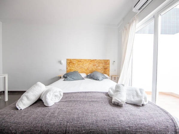 The studio has a double bed, TV, fully equipated kitchenette and a complete bathroom. Also, a interior private patio.