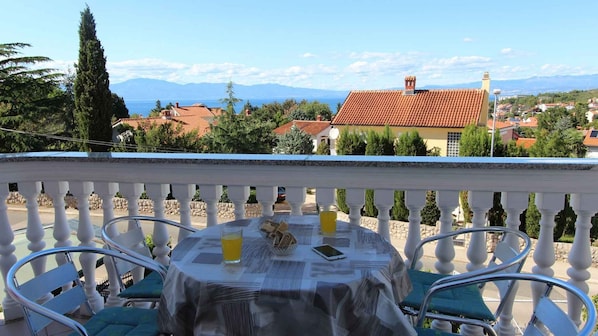 Location Malinska. The holiday apartement is located on a garden plot. Parking is available on the property.